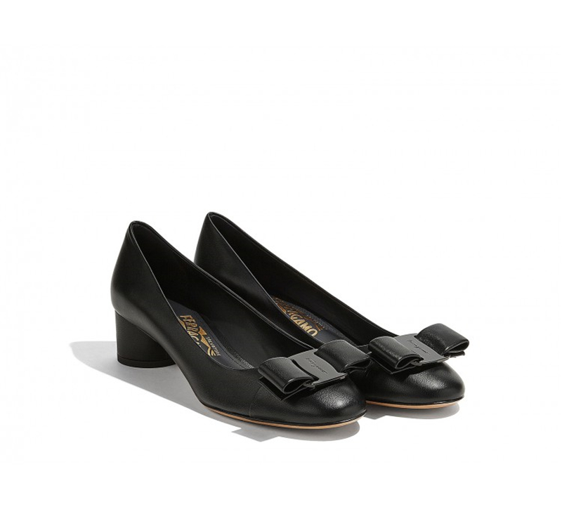 • 685762 Ferragamo菲拉格慕 VARA 小羊皮 蝴蝶結中跟 黑色