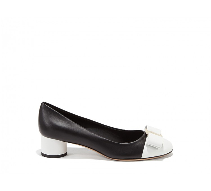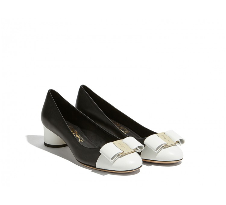 • 詳細介紹:經典標志性Ferragamo高跟鞋,以雙色設計重新演繹,圓頭設計和疊層鞋跟,飾有標志性Vara蝴蝶結,是適合出席各類場合的必備鞋款。