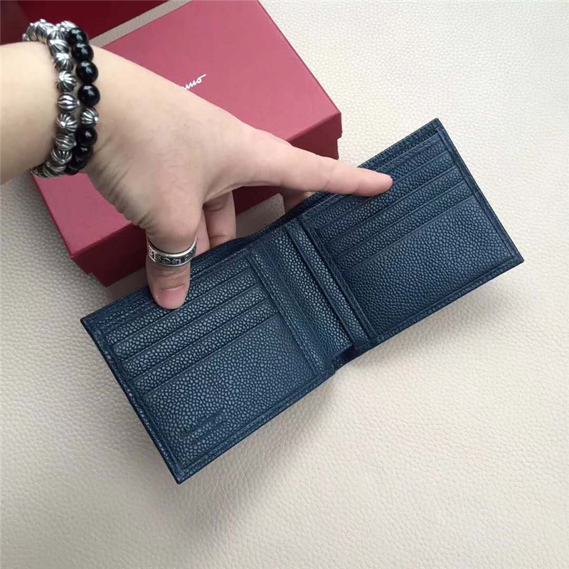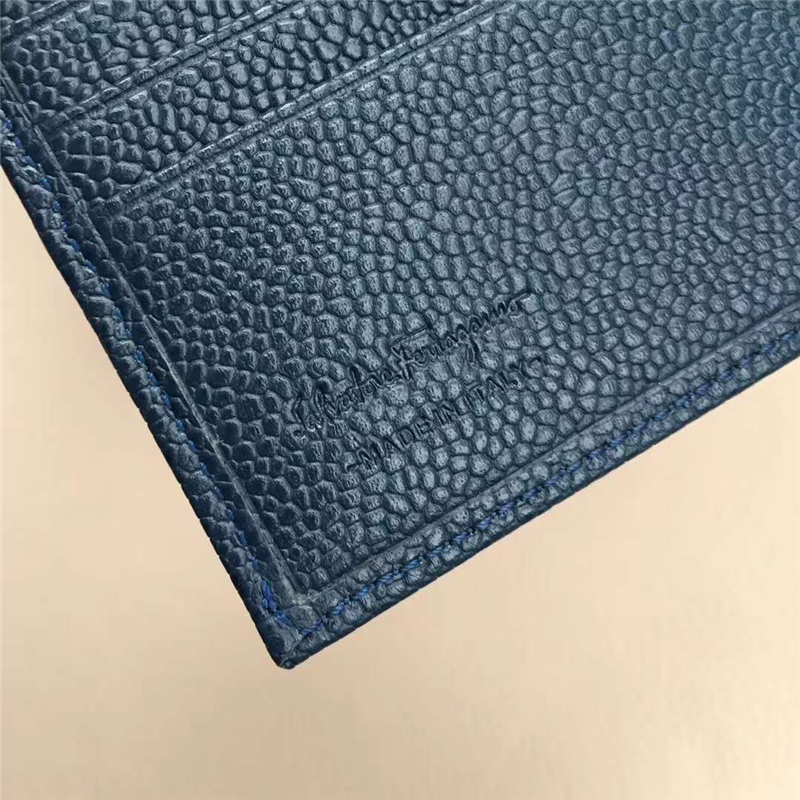 • 669791 Ferragamo菲格拉慕 珍珠魚紋牛皮 對折 短款錢包 藏青色
