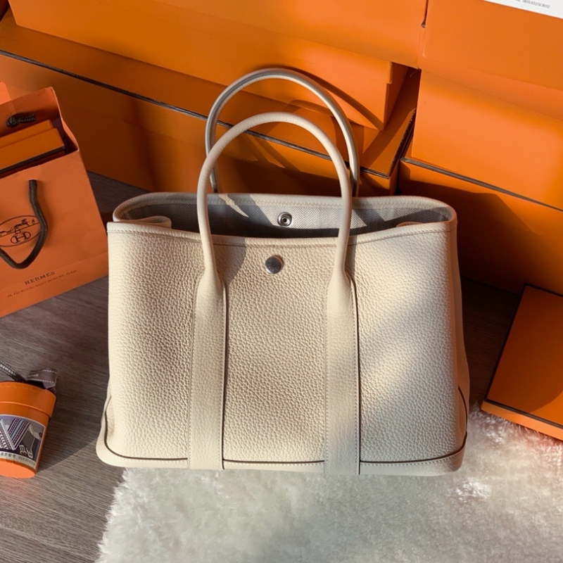 愛馬仕 Garden party花園包 愛馬仕花園包30購物袋 奶昔白