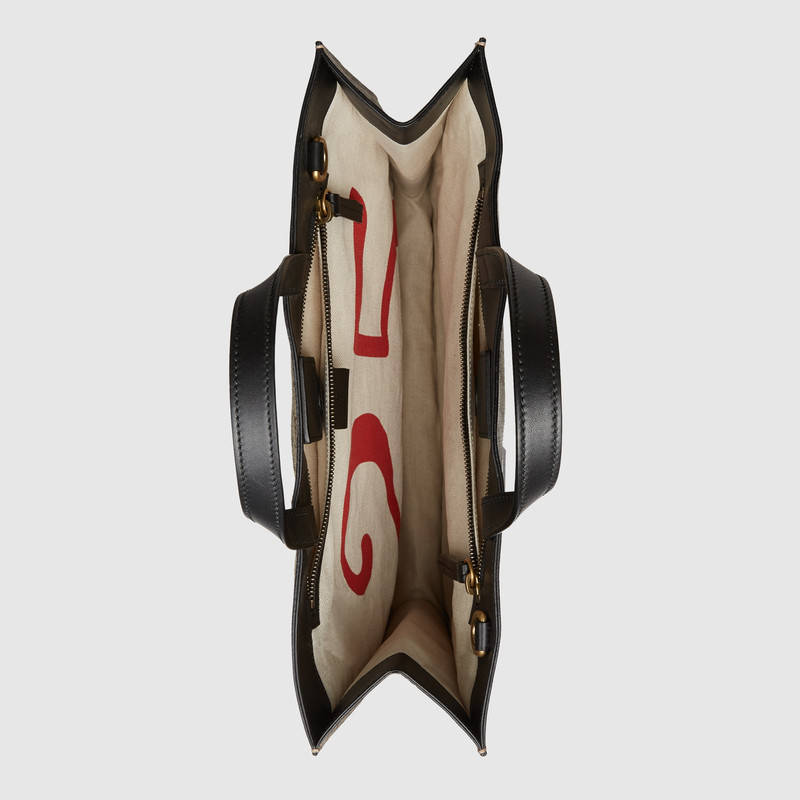 450950 GUCCI 老虎印花 GG Supreme高級人造帆布 購物袋 烏木色