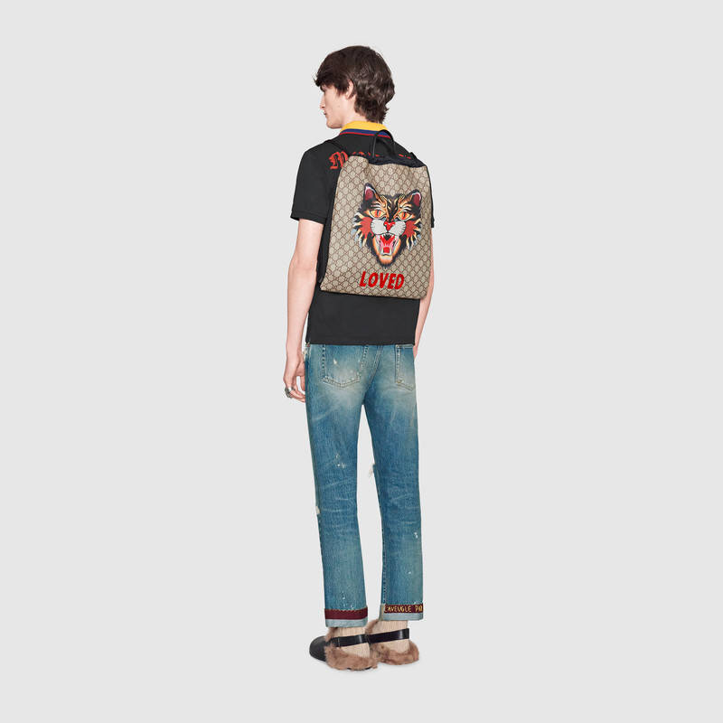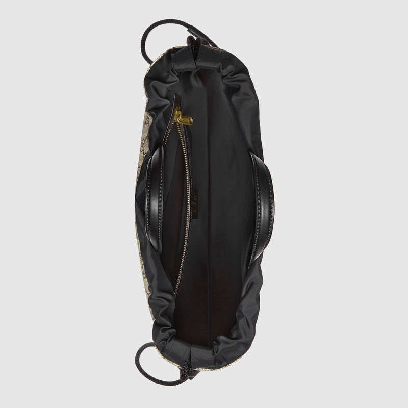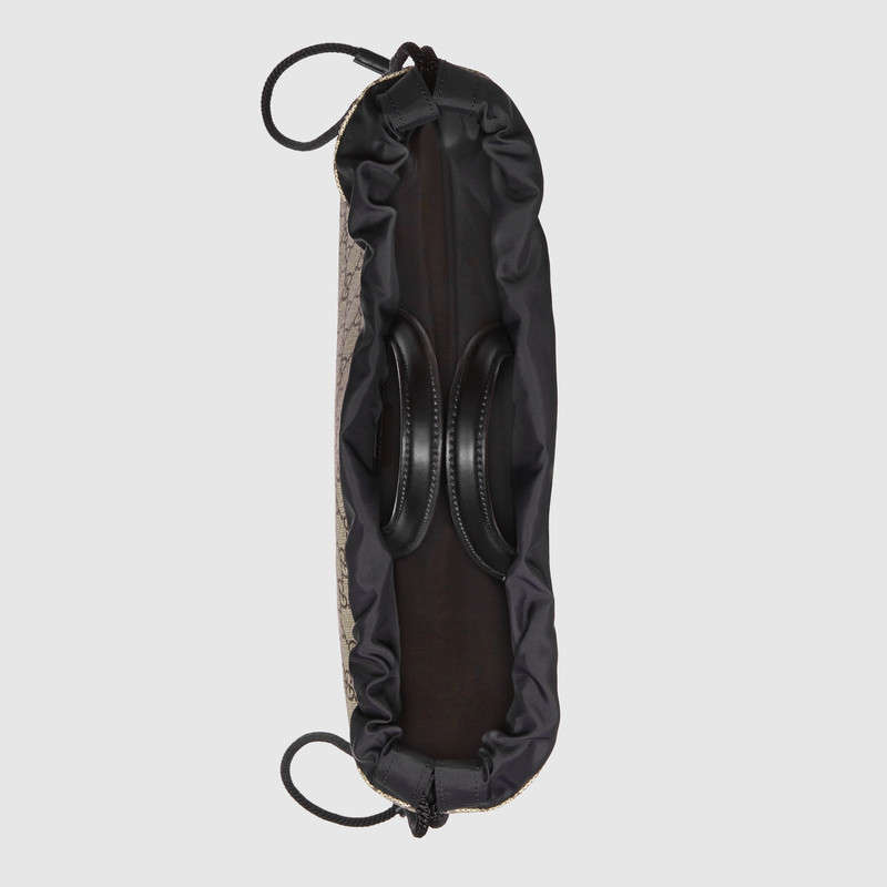 473872 GUCCI 古馳 氣場貓印花 GG Supreme高級人造帆布 拉繩背包手提包 烏木色