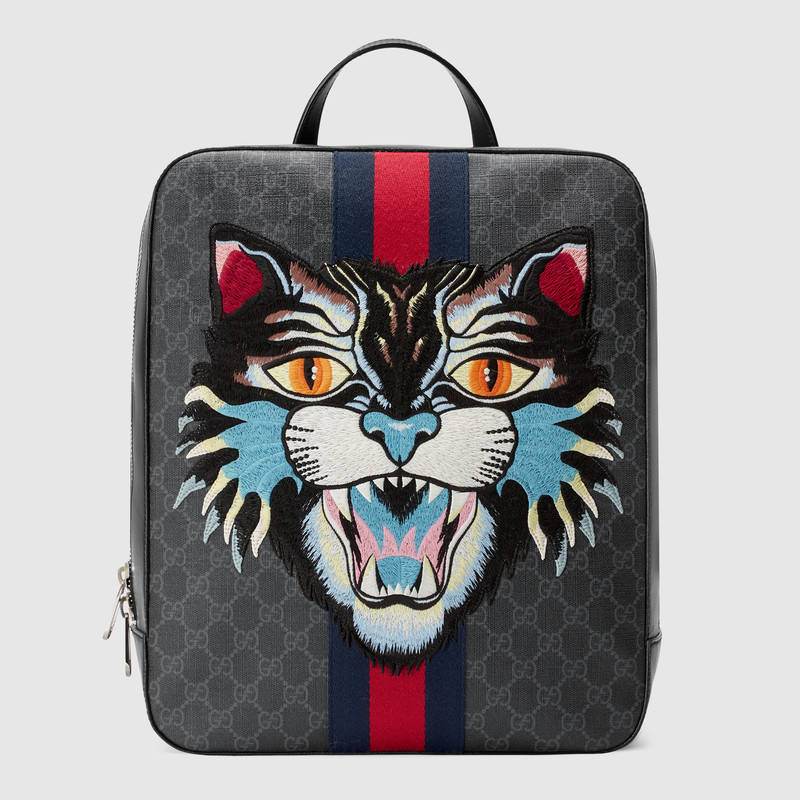 • 詳細介紹:GUCCI 氣場貓貼花 GG Supreme高級人造帆布 雙肩背包,氣場貓圖案個性鮮明,貫穿于整個男女早秋系列設計中。咆哮貓頭以刺繡方式呈現,并應用在飾有藍紅織帶細節的GG Supreme高級環保材料定型背包。