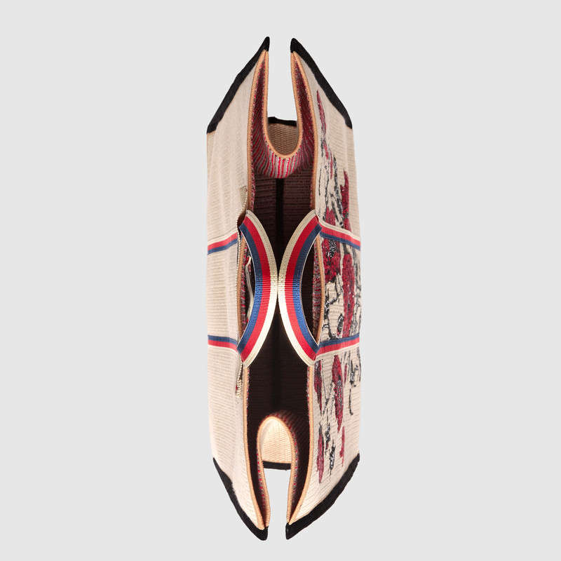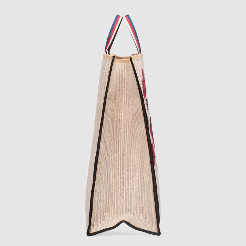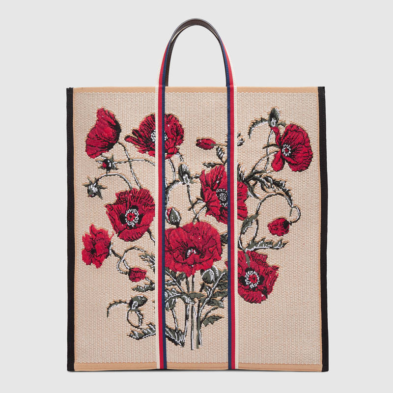 • 484690 GUCCI 罌粟花圖案 啞光帆布 購物袋 杏色