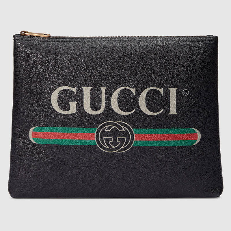 • 500981 Gucci標識 復古印花 軟皮革 中號 手拿包 黑色