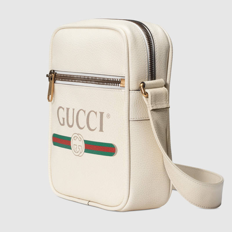 • 523591 Gucci 復古印花 軟皮革 百搭郵差包 白色