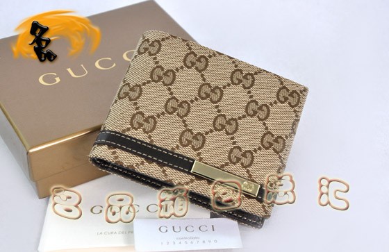 - 233100 專柜品質(zhì) GUCCI雙G花布錢包 GUCCI短款錢包 古奇男包 杏配黑色