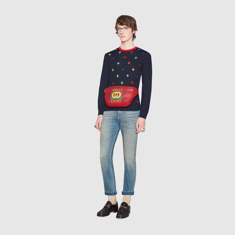 • 詳細介紹:靈感源自八十年代的復古印花,將Gucci標識引領至時尚前沿。復古風格圖案在腰包正面精彩呈現,以柔軟的織紋皮革精心打造。