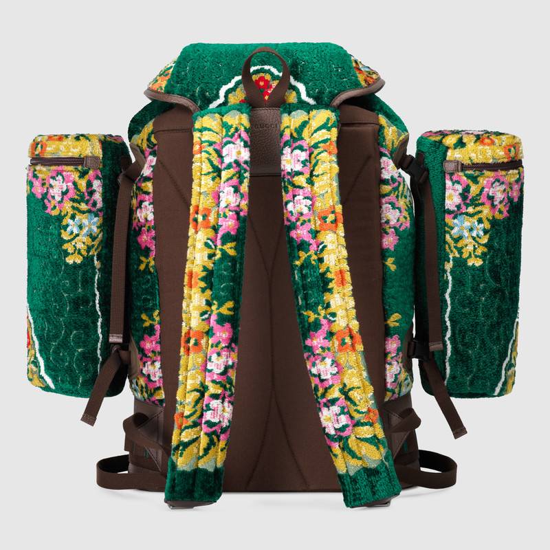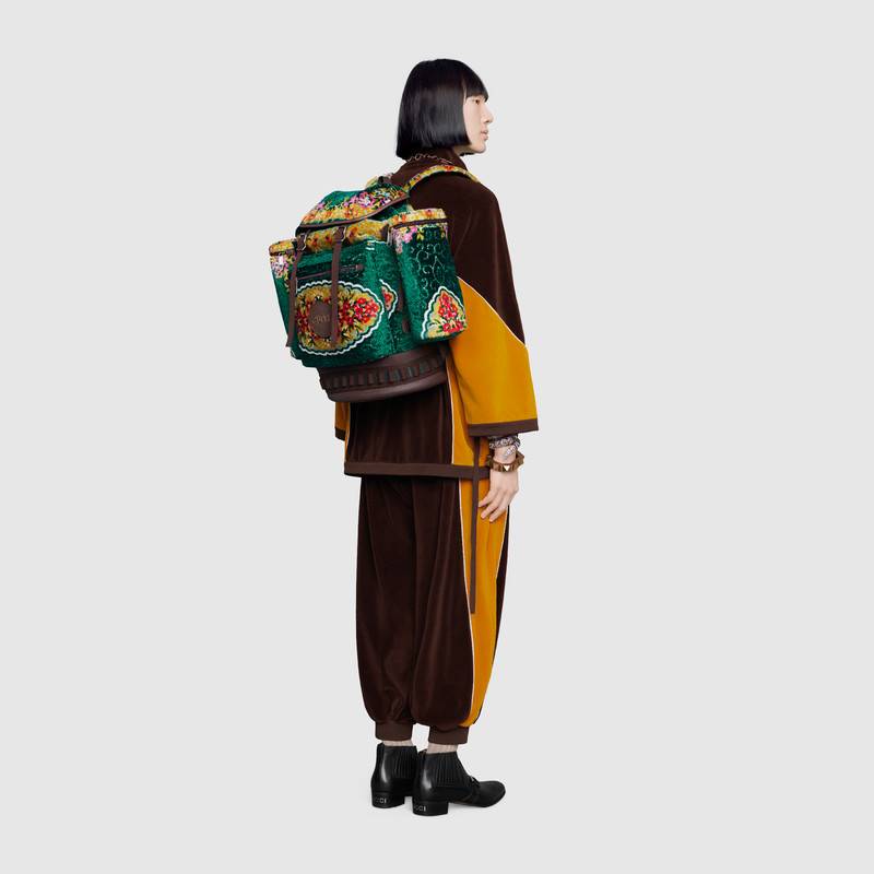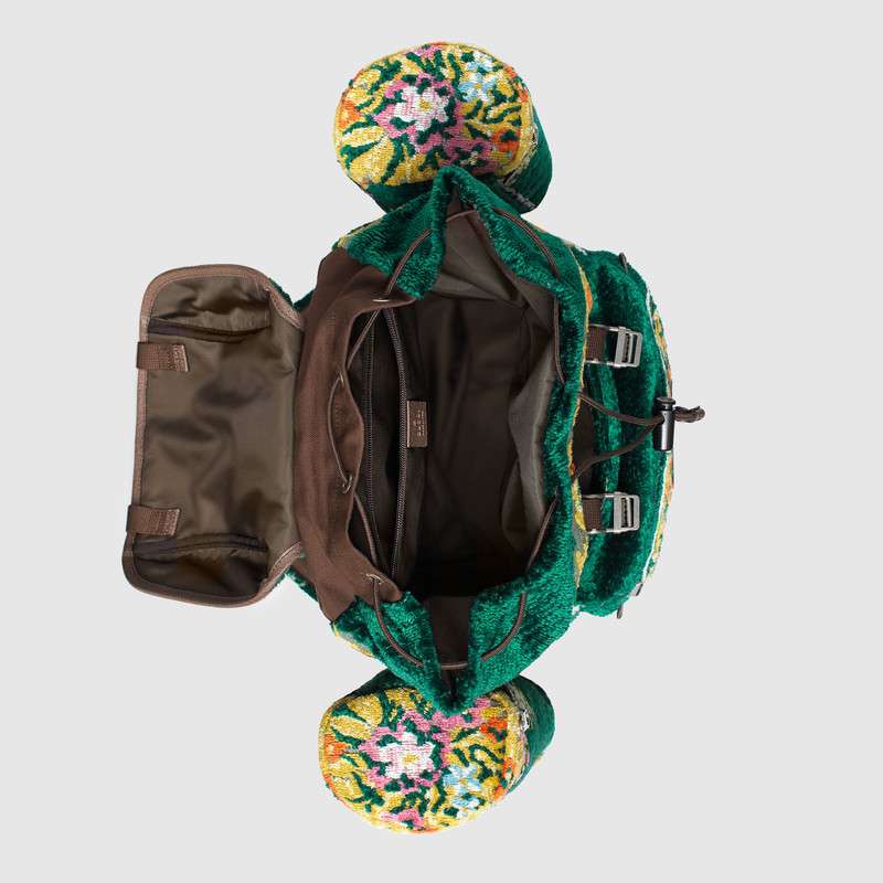 • 562911 Gucci男士背包 花卉圖案 天鵝絨 絲線提花 大號 古馳雙背包 綠色