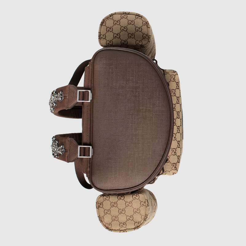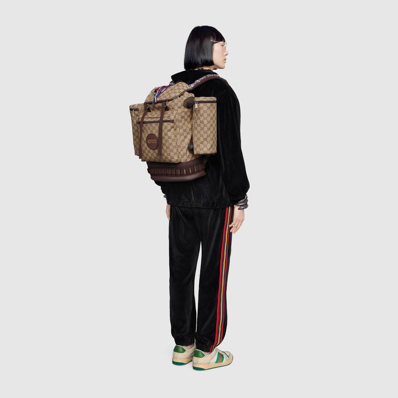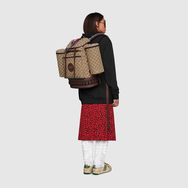 • 詳細介紹:大號背包秉持品牌不拘一格的美學理念,同時融入徒步風格細節,在2019春夏系列時裝秀中精彩亮 相。采用多口袋設計,兩側各設有一個可拆卸杯套,沿背帶裝飾精美繁復的水晶刺繡,飾珠粒心臟 貼花煥發別樣風采。以GG帆布呈現—對早期典藏面料的新穎詮釋。