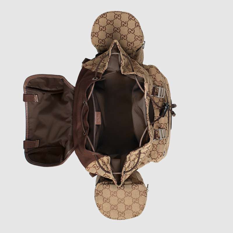 • 562911 Gucci男士背包 花卉圖案 天鵝絨 絲線提花 大號 古馳雙背包 駝色