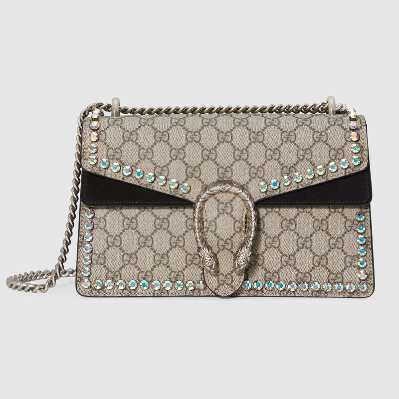 • 詳細介紹:Dionysus 系列肩背包,配以如今頗具代表性的織紋虎頭扣——此獨特細節靈感來源于希臘神祇狄俄尼索斯(Dionysus 系列),在神話中,他曾騎在宙斯(Zeus)派來的老虎身上,越過底格里斯河(Tigris)。滑動鏈條包有多種背法,可在肩背和手提之間自由轉換。造型邊緣裝飾大號水晶,外形獨特醒目。