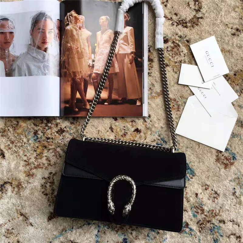 400249 Dionysus系列酒神包 磨砂皮 織紋虎頭扣 Gucci鏈條肩背包 黑色