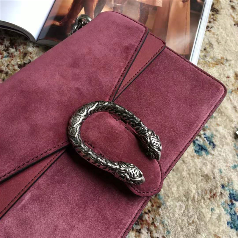 • 400249 Dionysus系列酒神包 磨砂皮 織紋虎頭扣 Gucci鏈條肩背包 棗紅色