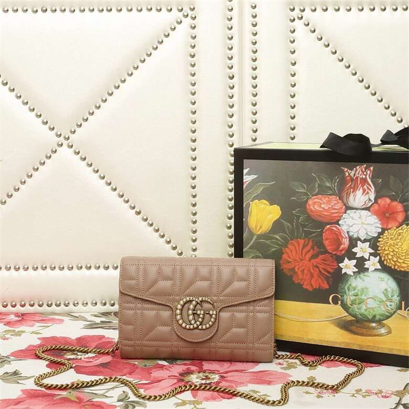 443122 Gucci鏈條包 雙G珍珠扣翻蓋 古馳斜跨女包 卡其