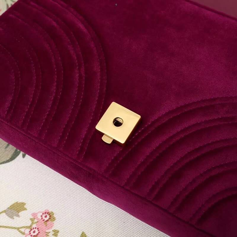 - 443496 Gucci女包 GG Marmont系列 天鵝絨 大號 古馳鏈條包 Gucci斜挎包 玫紫色