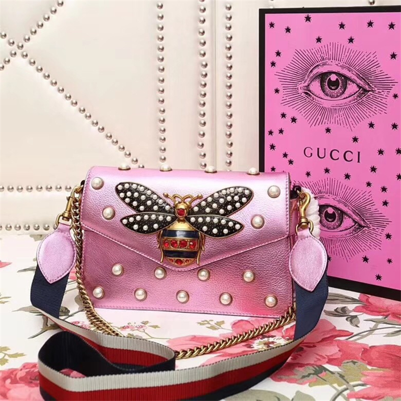 • 453778 Gucci女包 Broadway系列 Gucci鉚釘包 古馳蜜蜂包 Gucci迷你手袋 粉色