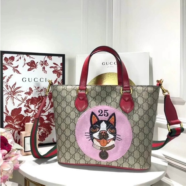 • 473887 Gucci 梗犬波士頓Bosco圖案 高級人造帆布 手提袋 紅色
