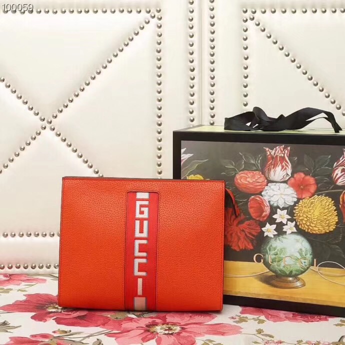 475316 GUCCI手拿包 提花條紋 古馳手包 甩紋牛皮 原版皮質 橙色