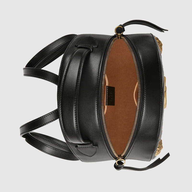 476671 GUCCI GG Marmont系列 動物造型鉚釘 皮革 雙肩包 黑色