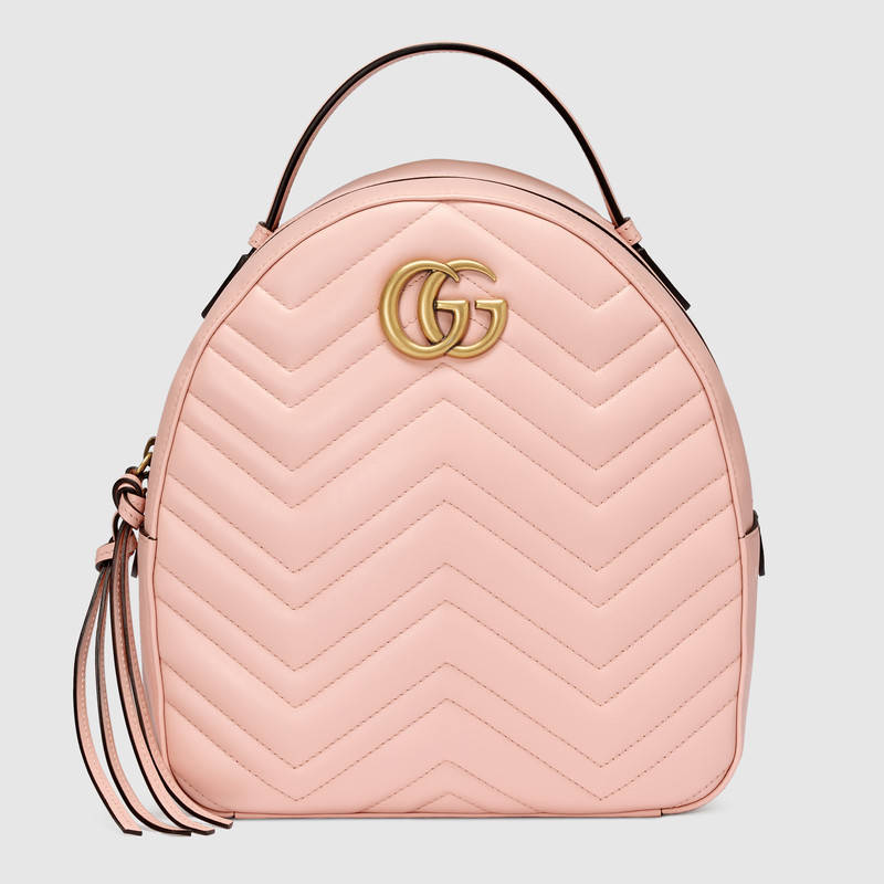 476671 GUCCI GG Marmont系列 絎縫 皮革 雙肩包 粉色
