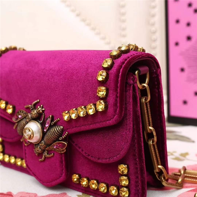 • 489218 GUCCI Broadway 系列 天鵝絨 迷你手袋 紫紅色