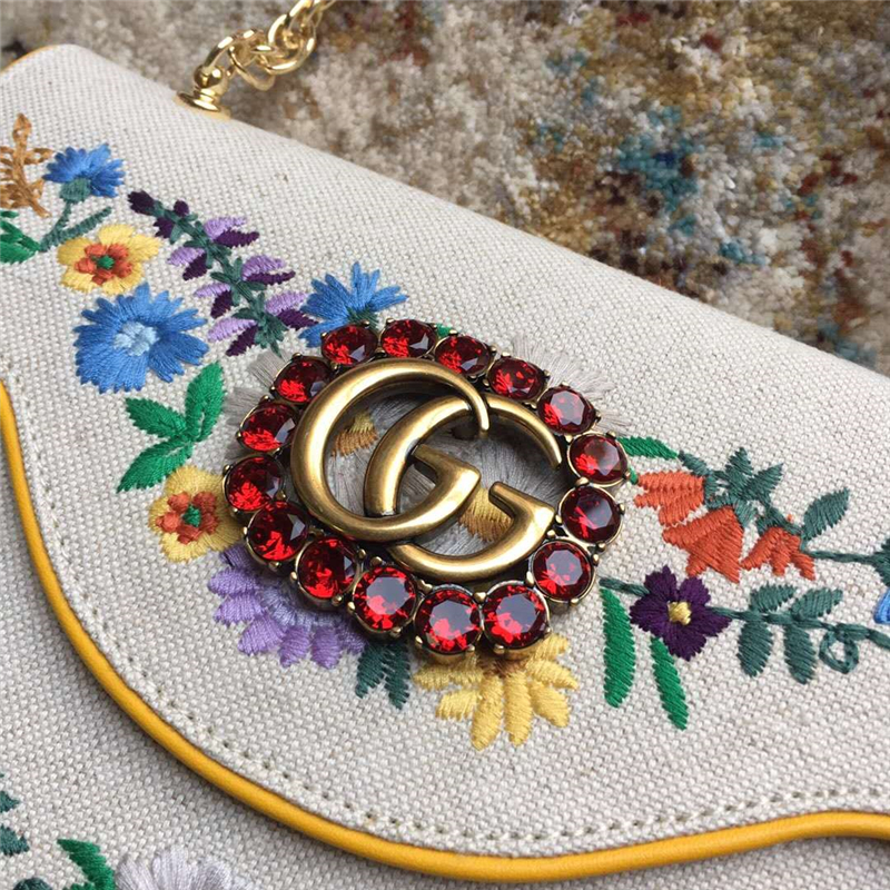 • 詳細介紹:源自G家Garden的繽紛花朵精心刺繡裝飾,雙G配件和熠熠生輝的水晶滾邊,包的背面刺繡Mystic Cat(神秘貓)