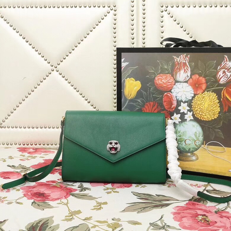 527857 GUCCI 2018秋冬 咆哮虎頭裝飾 翻蓋 肩背包 綠色