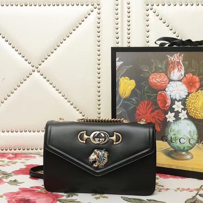 537241 Gucci 秋冬 Rajah系列 虎頭鉆石 牛皮 鏈條肩背包 黑色