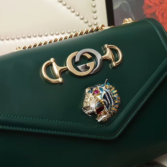 537241 Gucci 秋冬 Rajah系列 虎頭鉆石 牛皮 鏈條肩背包 綠色