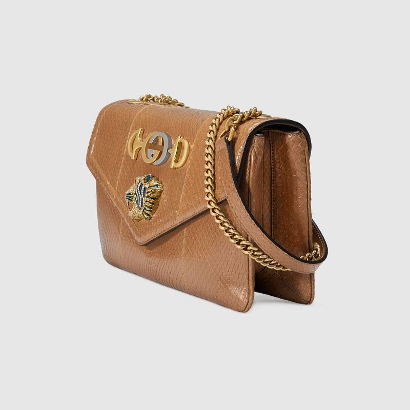 當前位置: 首頁>Gucci|古奇>Gucci女包> 537241 LYQDX 2865 Gucci Rajah系列蛇皮中號肩背包 Gucci鏈條包 灰褐色
