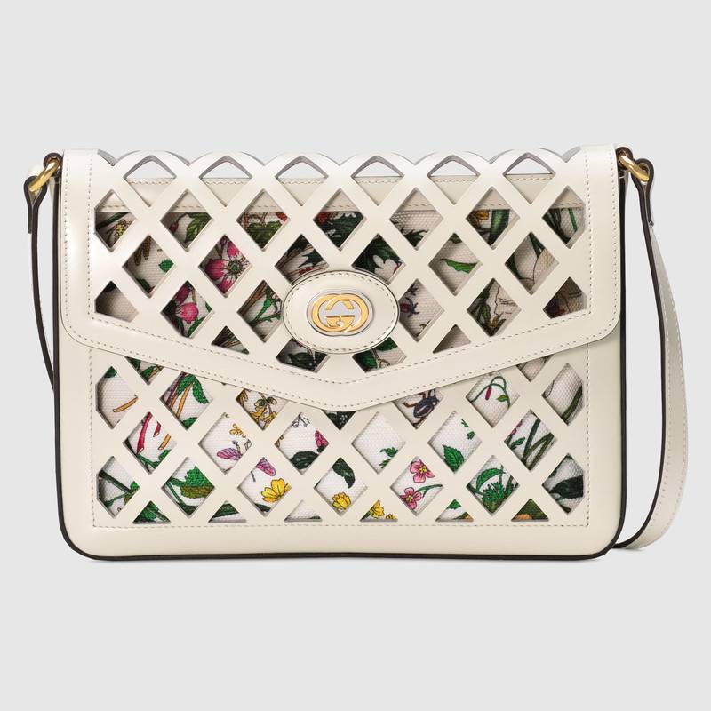 • 550138 Gucci女包 鏤空皮革 花卉圖案 中號 翻蓋 古馳肩背包 白色