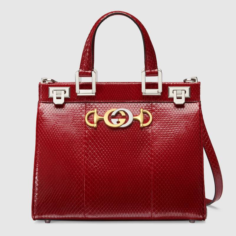 - 569712 LYQ0X 6438 Gucci Zumi系列蛇皮小號手提包 Gucci女包 紅色