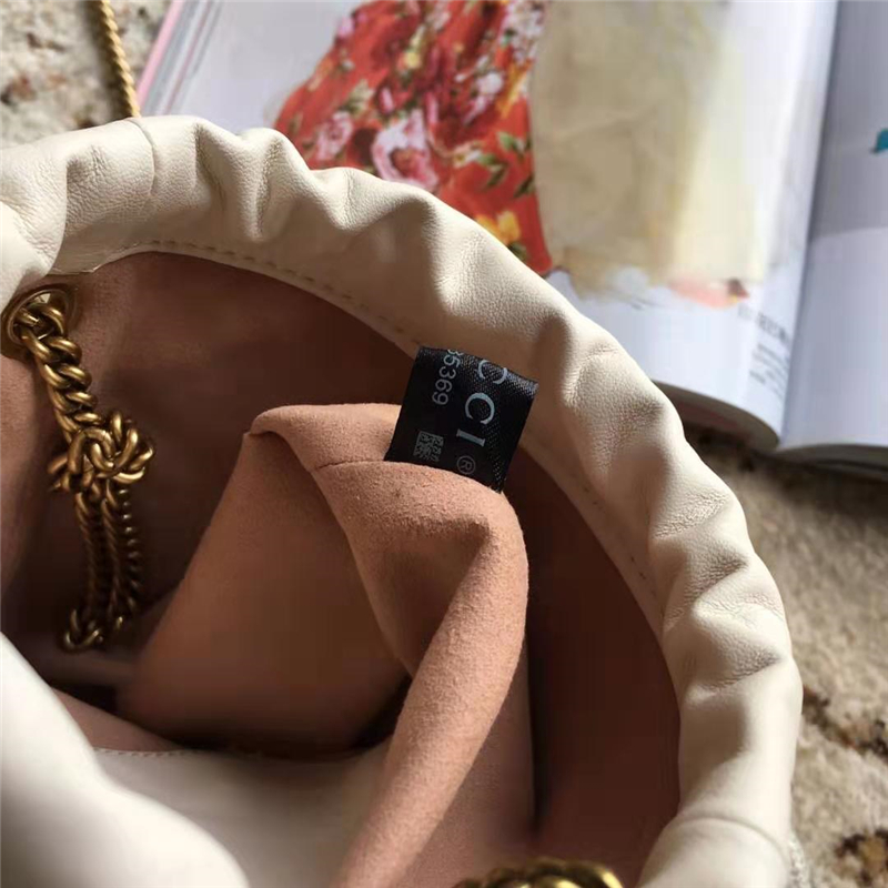 575163 Gucci圓筒包 GG Marmont系列 絎縫皮革 抽繩 Gucci迷你水桶包 白色