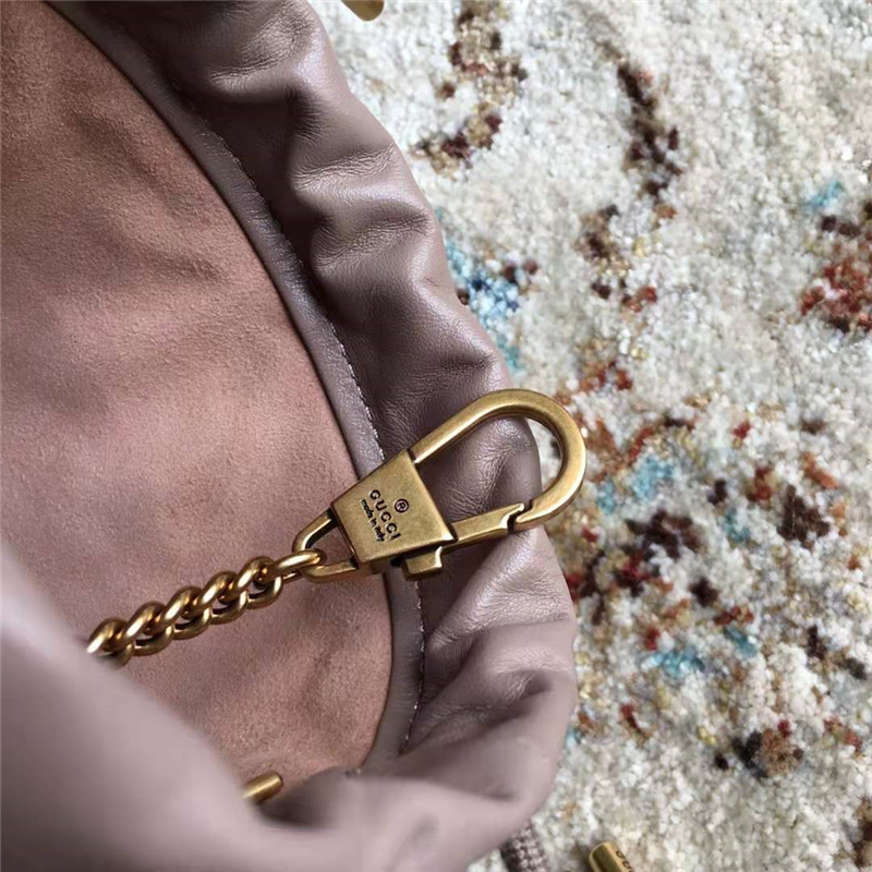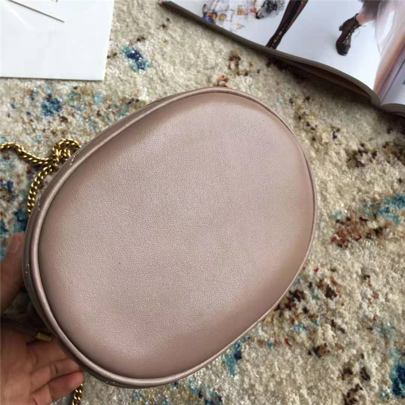 • 575163 Gucci GG Marmont系列迷你水桶包 Gucci圓筒包 灰粉色