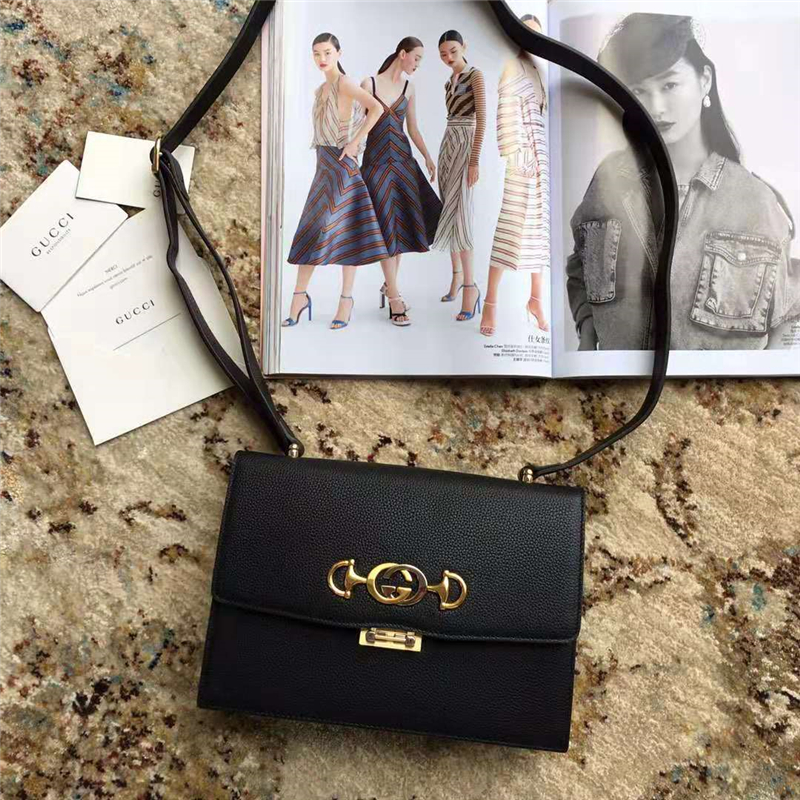 576388 Gucci女袋 Zumi系列 粒面皮革 互扣式G馬銜扣 小號 Gucci肩背包 黑色
