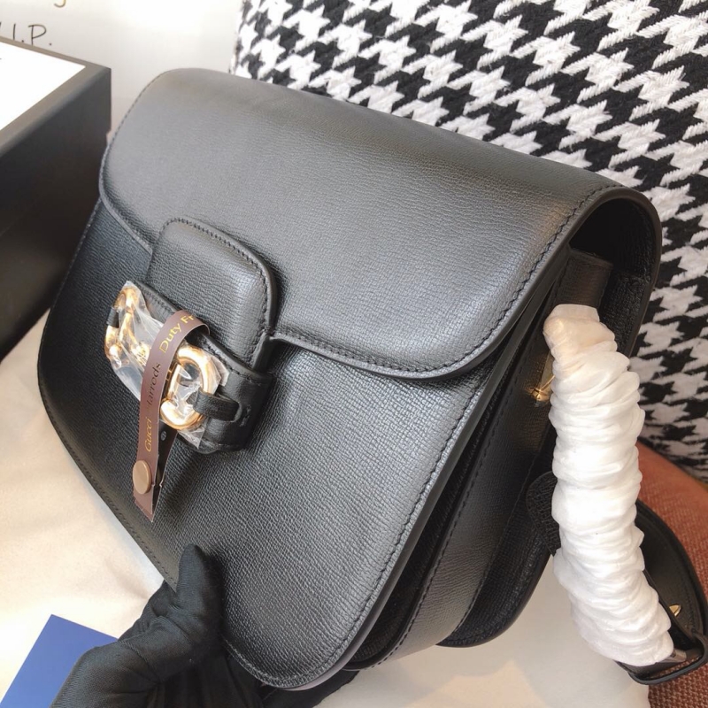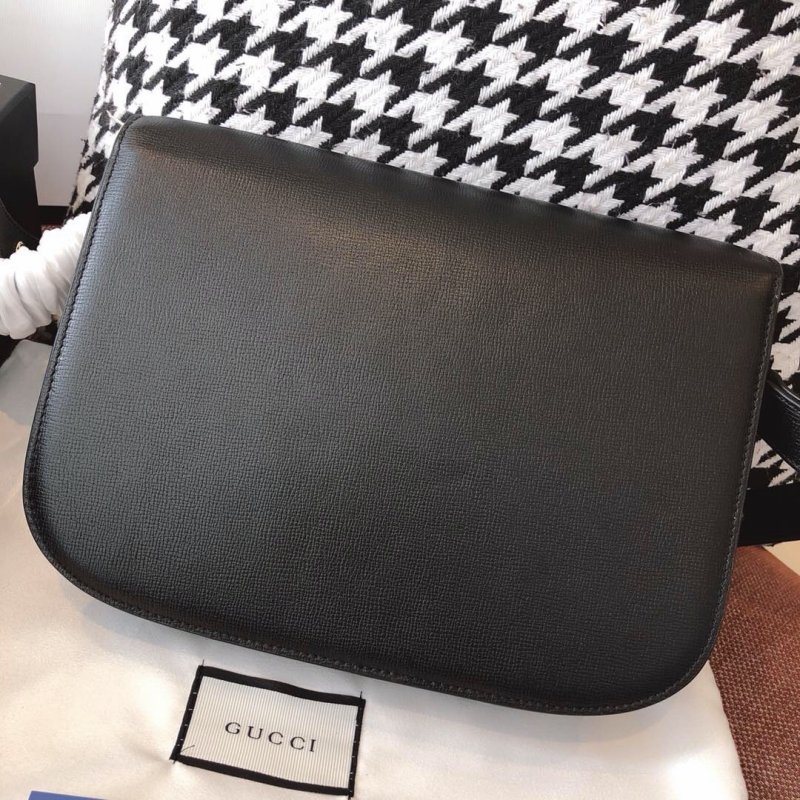- 602204 Gucci 1955馬銜扣肩背包 Gucci馬鞍包 黑色復古格織紋皮革