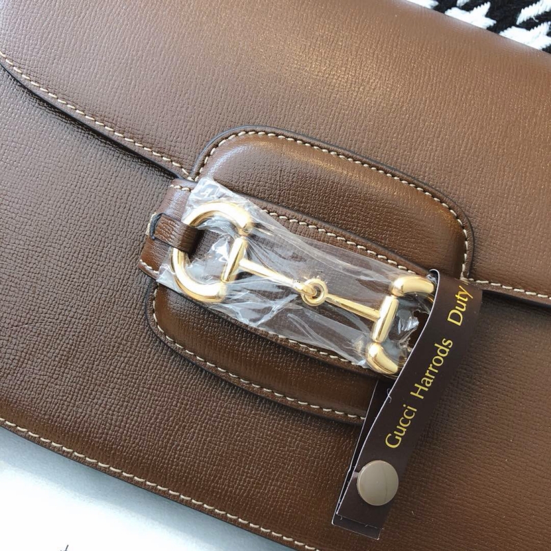 - 602204 Gucci 1955馬銜扣肩背包 Gucci馬鞍包 棕色復古格織紋皮革