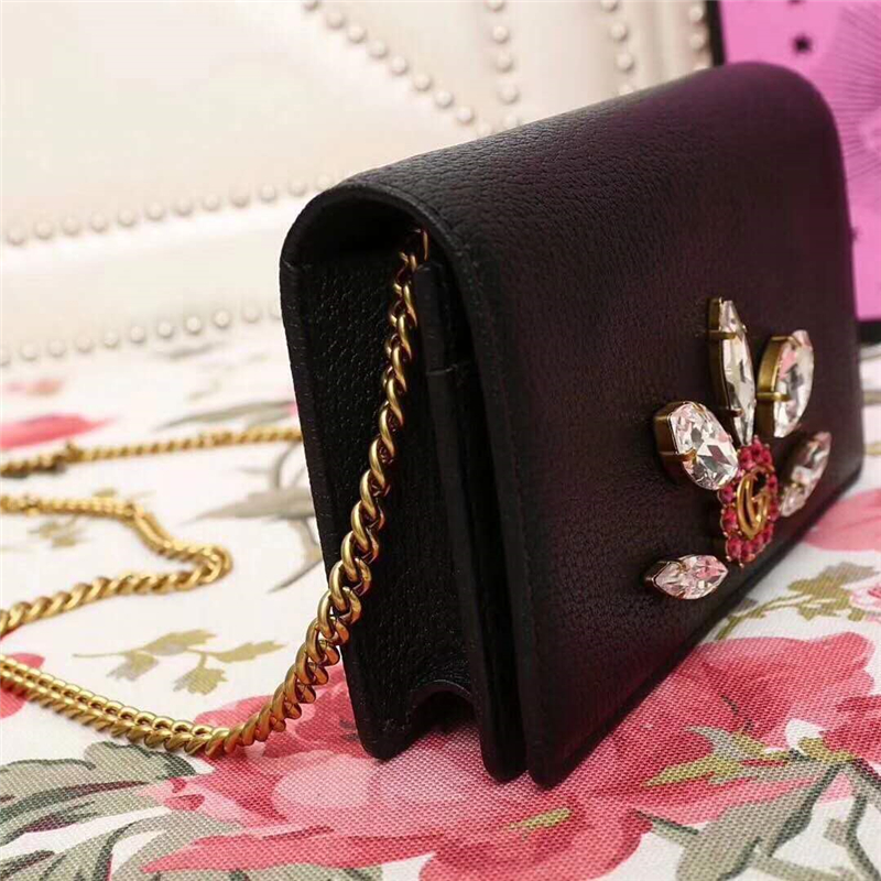 499782 GUCCI女包  古馳鏈條小包 水鉆包 帶化妝鏡 黑色