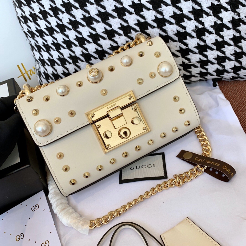 • 432182 Gucci Padlock系列鉚釘包 古馳單肩女包 白色