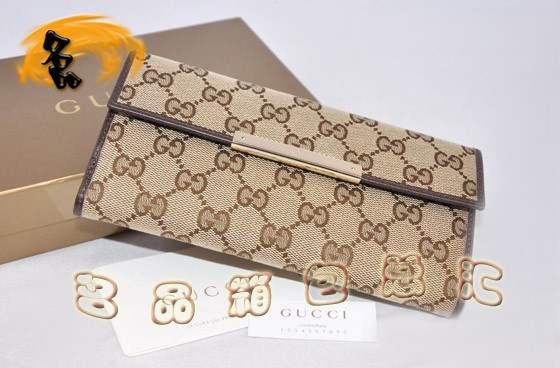 - 112715 GUCCI新款雙G花布女士錢夾 GUCCI錢包 GUCCI長款錢包 杏配深啡