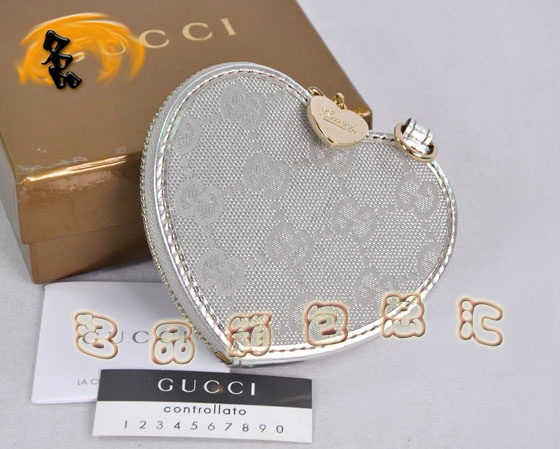 - 152615 Gucci經典雙G帆布時尚休閑女包 Gucci零錢包 Gucci錢包 灰配銀色