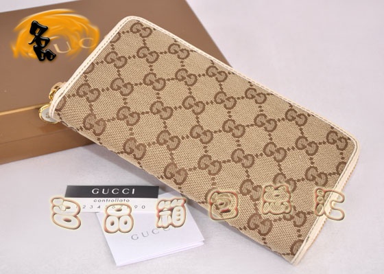 - 154591 一比一品質(zhì) Gucci經(jīng)典雙G花布時尚休閑女士錢包 Gucci長款錢包 杏配米白色