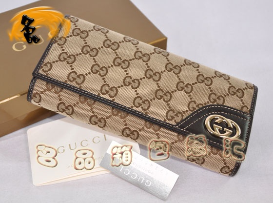 - 181595 古奇經(jīng)典雙G帆布女士錢夾 Gucci長款錢包 Gucci女包 一比一品質 杏配深啡色