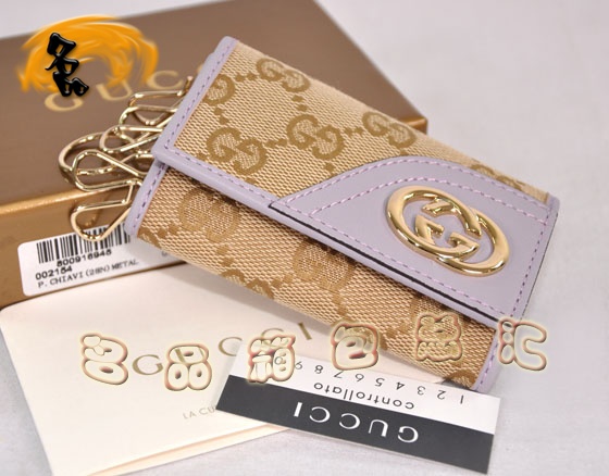 - 181599 Gucci時(shí)尚休閑女包 Gucci鑰匙包 Gucci鑰匙夾 Gucci帆布包 杏配淺紫色