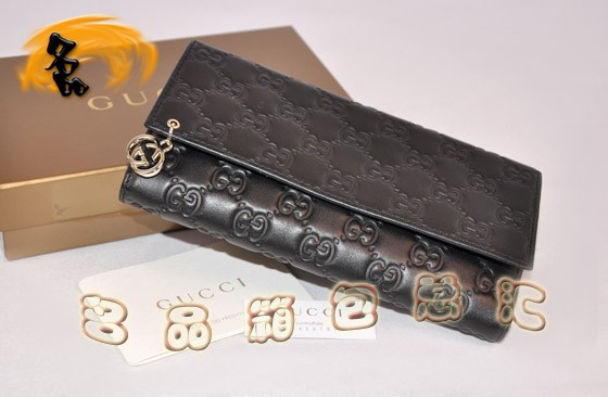 - 212104 GUCCI長款錢包 GUCCI經典雙G牛皮壓花女士錢包 專柜品質 黑色