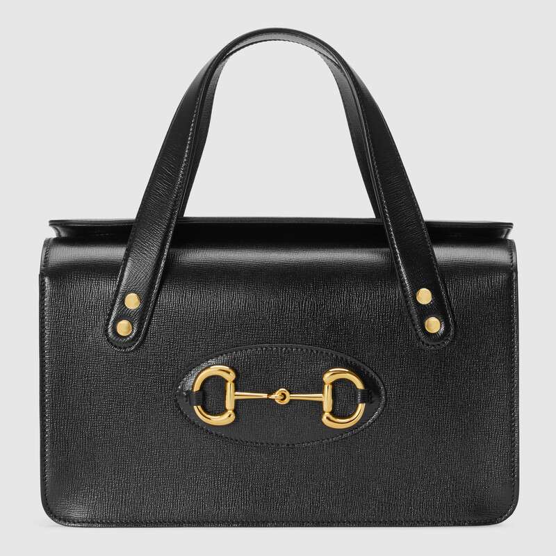 - 627323 Gucci Horsebit 1955小號(hào)馬銜扣手提包 復(fù)古風(fēng)格織紋皮革 黑色