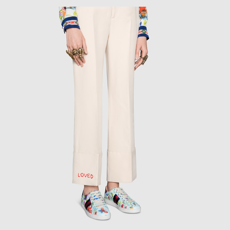 - 486792 GUCCI Ace系列 Unskilled Worker 手繪花卉印花 運(yùn)動(dòng)鞋 淺藍(lán)色