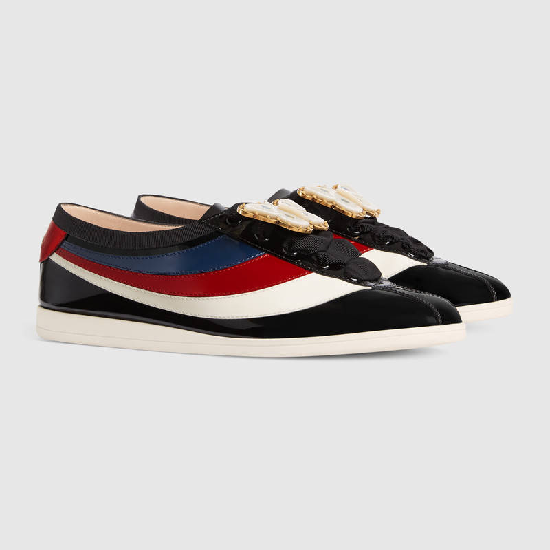493687 GUCCI Falacer 織帶裝飾 漆皮 低幫運動鞋 黑色
