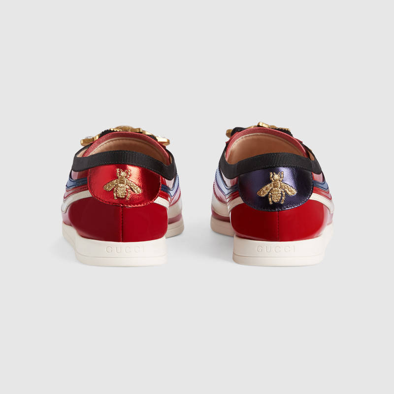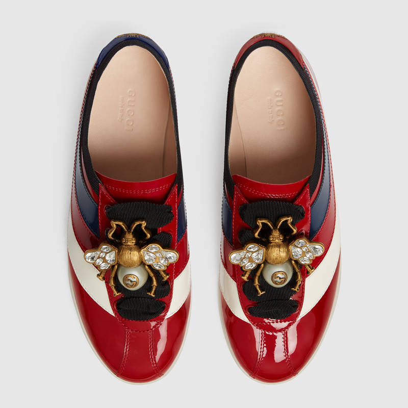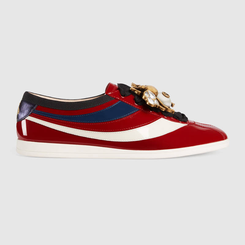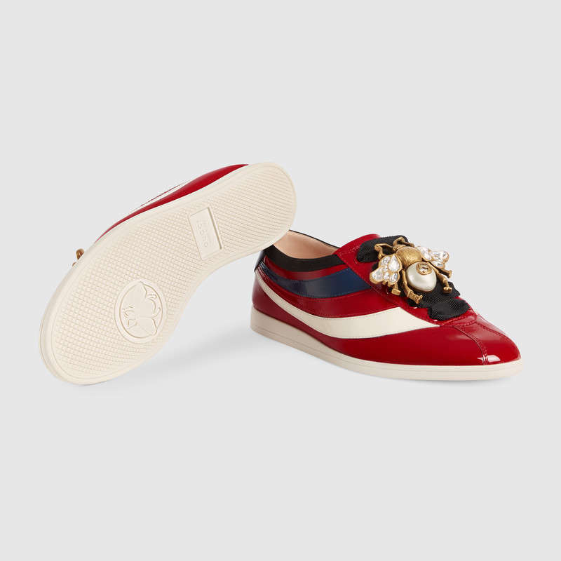 493692 GUCCI Falacer 織帶裝飾 漆皮 低幫運動鞋 紅色